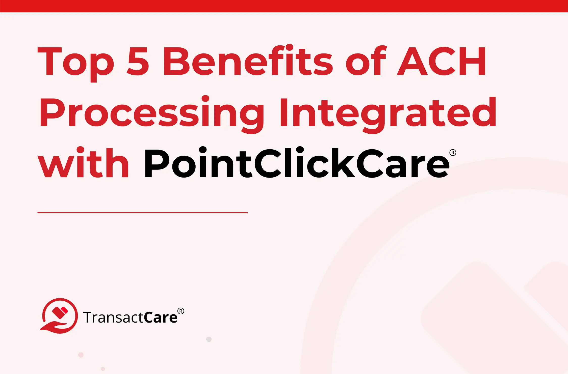 Step into the Future of Healthcare Payments: Unleash the synergy of ACH and PointClickCareTM with TransactCare®, crafting a seamless, secure, and cost-effective payment experience that boosts cash flow and wins your resident’s hearts.