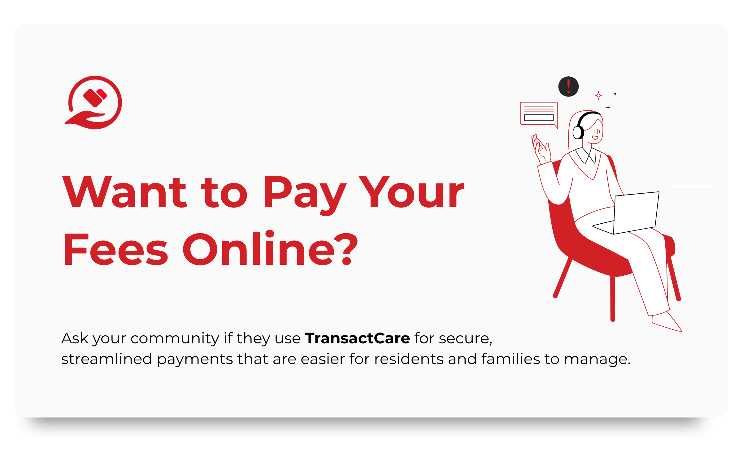 And if the facility uses a platform like TransactCare? You’re in luck. Our payment portal is designed to give residents access, flexibility, and real-time visibility, not just invoices in the mail and a prayer.
